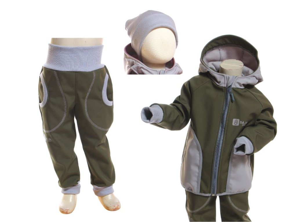 2. produkt - Zimní softshellové kalhoty kluky, khaki, šedé lemy | BajaDesign