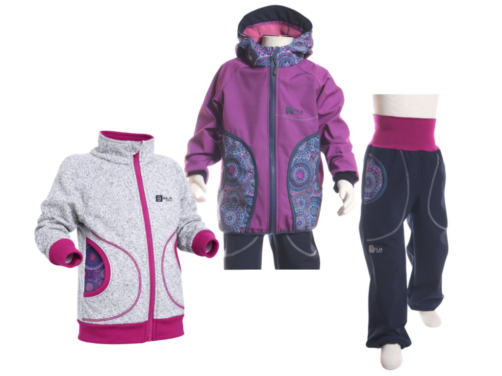 1. produkt - softshellová bunda pro holky, fialová + šedé mandaly | BajaDesign