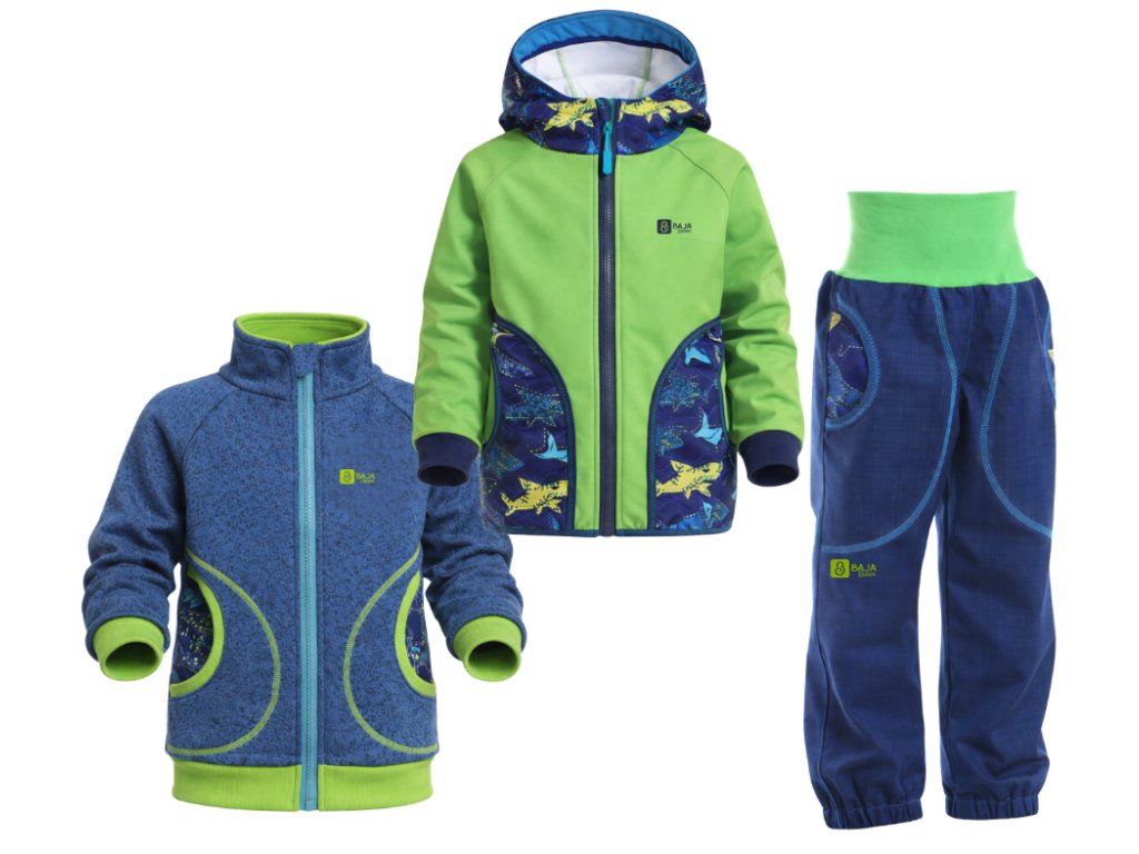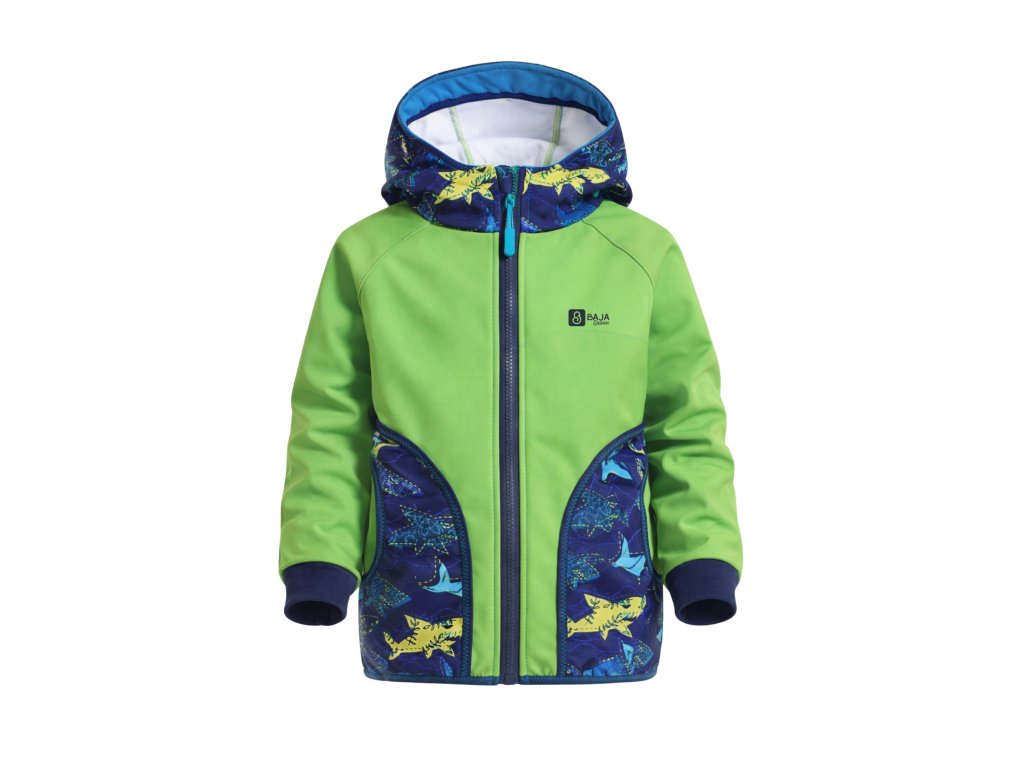 1. produkt - softshellová bunda pro kluky, zelená, žraloci na modré | BajaDesign