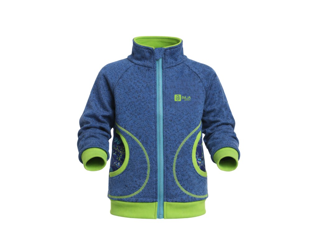 Celopropínací mikina pro je ušitá z fleecové svetroviny. Na lemování se snažíme použít vždy kontrastní barvu, tím je svetýrek originálnější a výraznější. Zip má u krku praktickou krytku, aby neškrábal... K ukončení rukávů používáme patent, díky kterému rukávky nepřepadávají přes zápěstí.