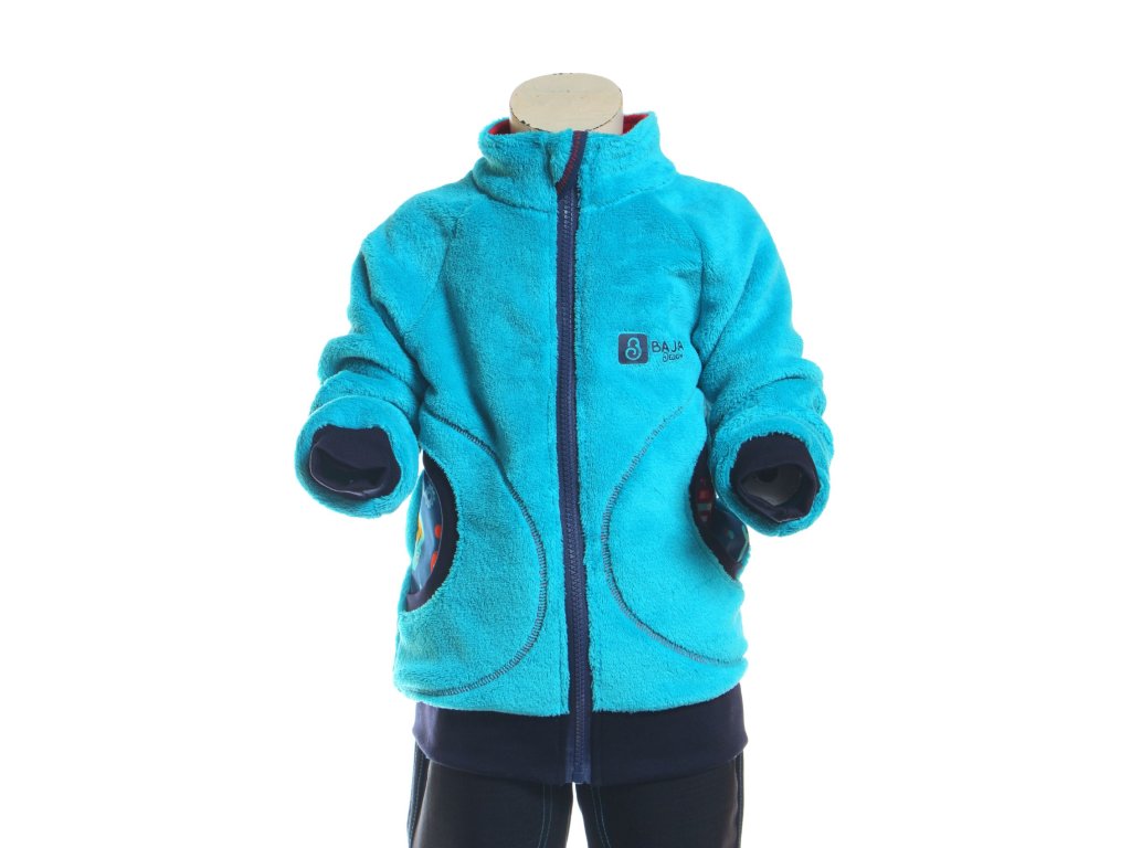 Celopropínací mikina pro kluky je ušitá z hřejivého corall fleecu. Zip má u krku praktickou krytku, aby neškrábal... K ukončení rukávů používáme patent, díky kterému rukávky nepřepadávají přes zápěstí.