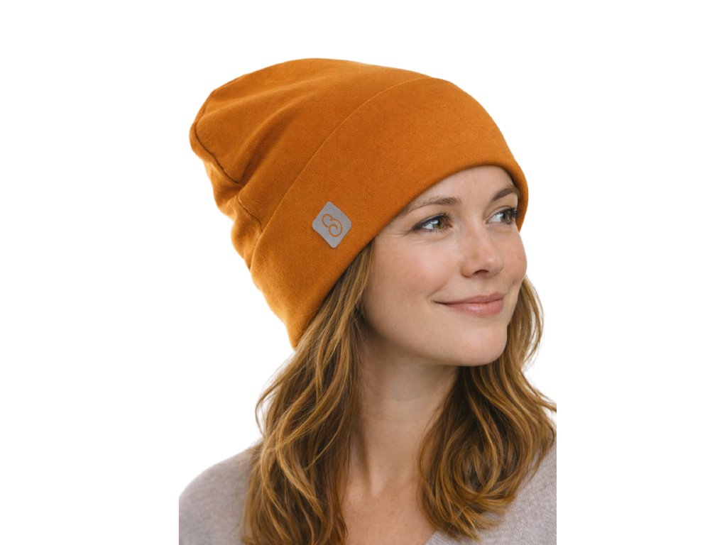 Dámská čepice s ohrnutým lemem, koňak