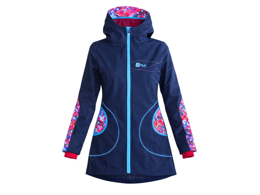 Dámský softshellový kabát P, modrý, růžové kaňky