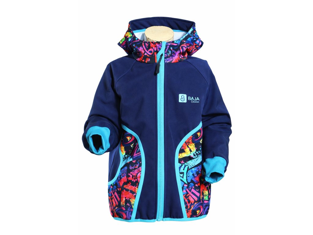dětská softshellová bunda, modrá, grafity
