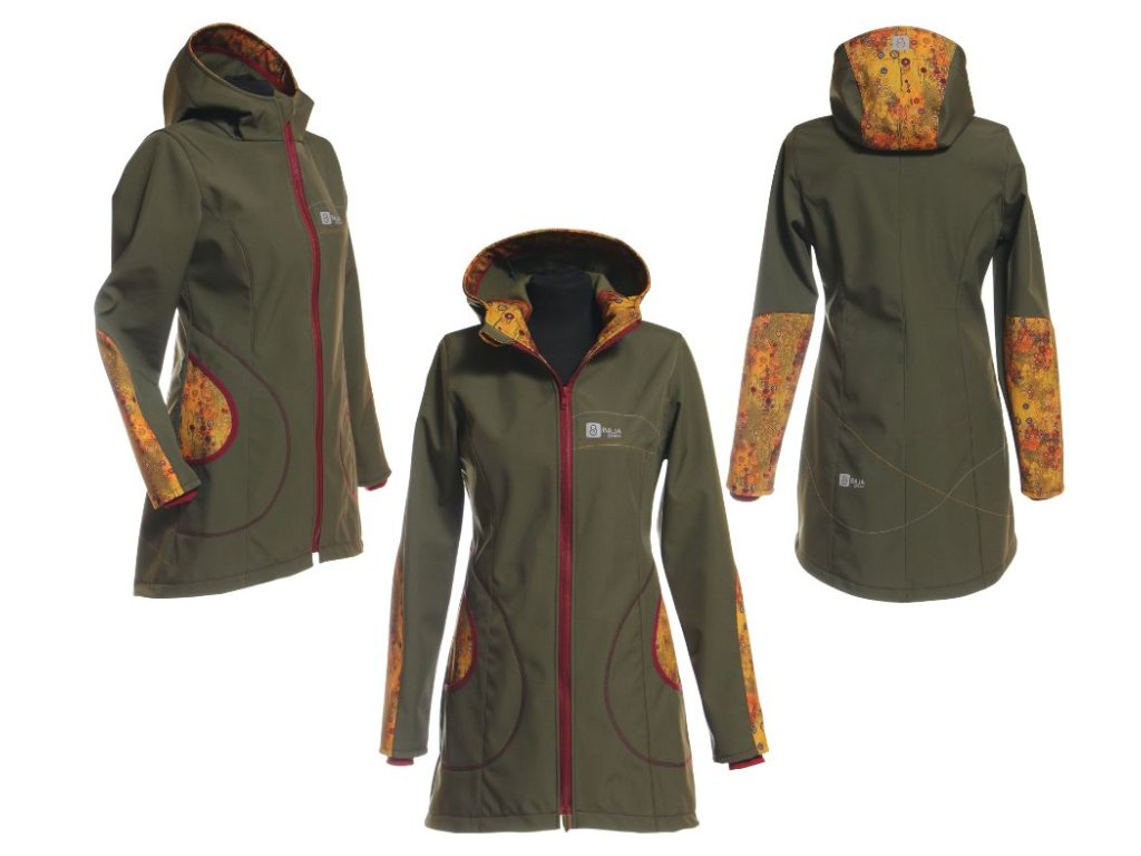 je ušitý ze zimního softshellu s fleecem na rubu. Je velmi elegantním řešením oblečení do větru či deště.