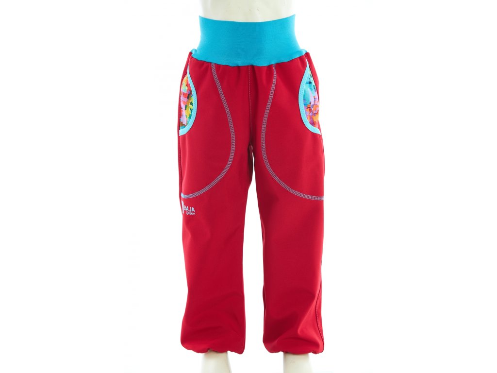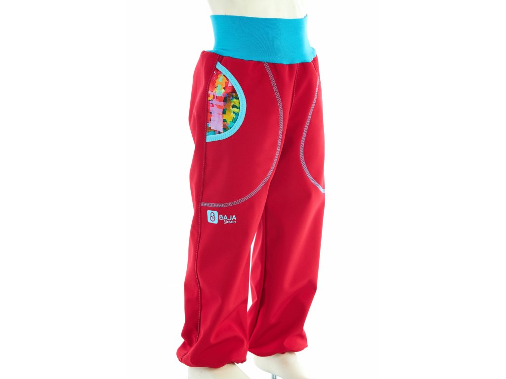 Jarní softshellové kalhoty pro holky, červené + barevná abstrakce