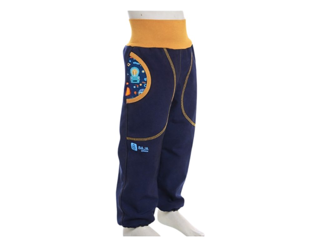 Jarní softshellové kalhoty pro kluky, tm. modré, hořčicová, roboti