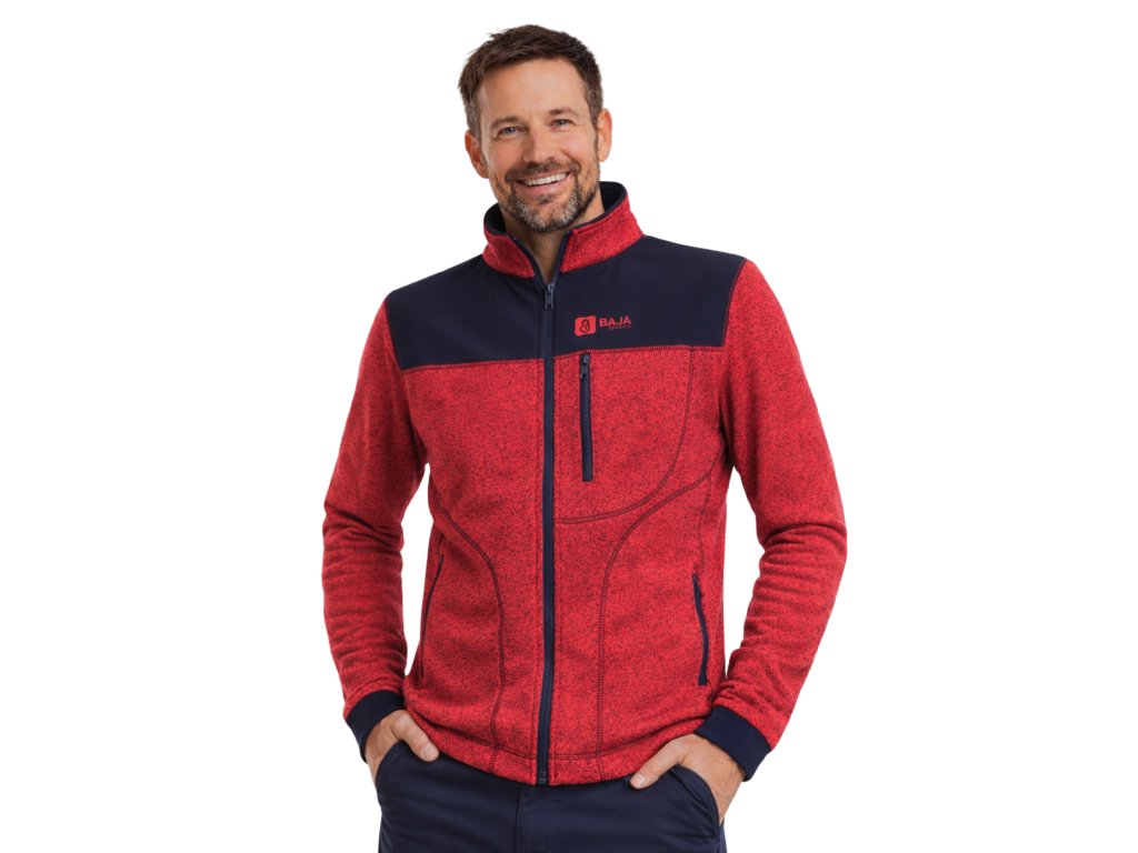Pánská mikina je ušitá ze svetroviny v kombinaci se softshellem, který kryje ramena. Mikina má dvě velké kapsy a jednu náprsní.