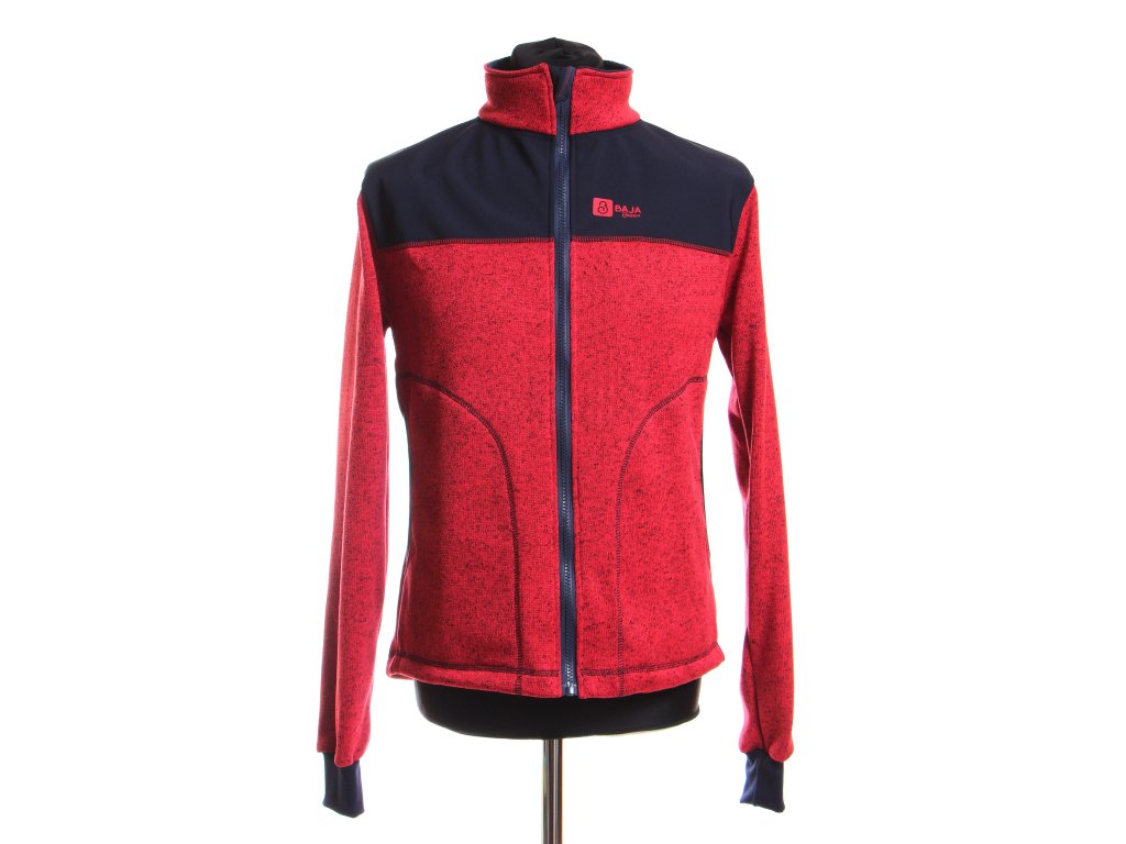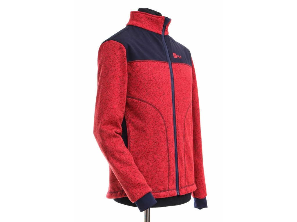Pánská mikina je ušitá ze svetroviny v kombinaci se softshellem, který kryje ramena. Mikina má dvě velké kapsy.