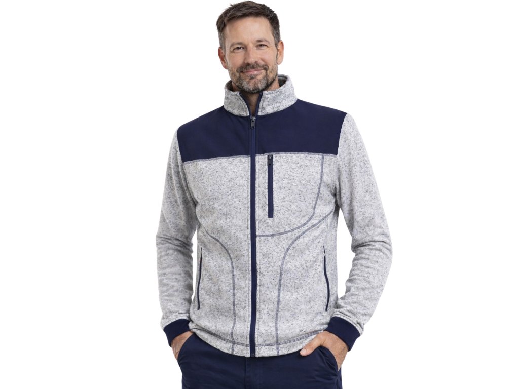 Pánská mikina je ušitá ze svetroviny v kombinaci se softshellem, který kryje ramena. Mikina má dvě velké kapsy.