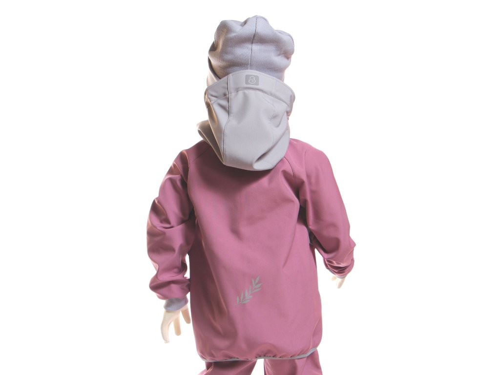 Softshellová bunda pro holčičky je ušitá ze softshellu (rub-fleece). Horní část kapuce je vystužená, takže krásně drží tvar a slouží jako kšiltík. Na zádek má bunda nažehlený reflexní obrázek.