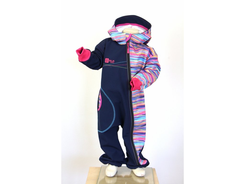 softshellová kombinéza pro holky, tm. modrá + pestré pruhy