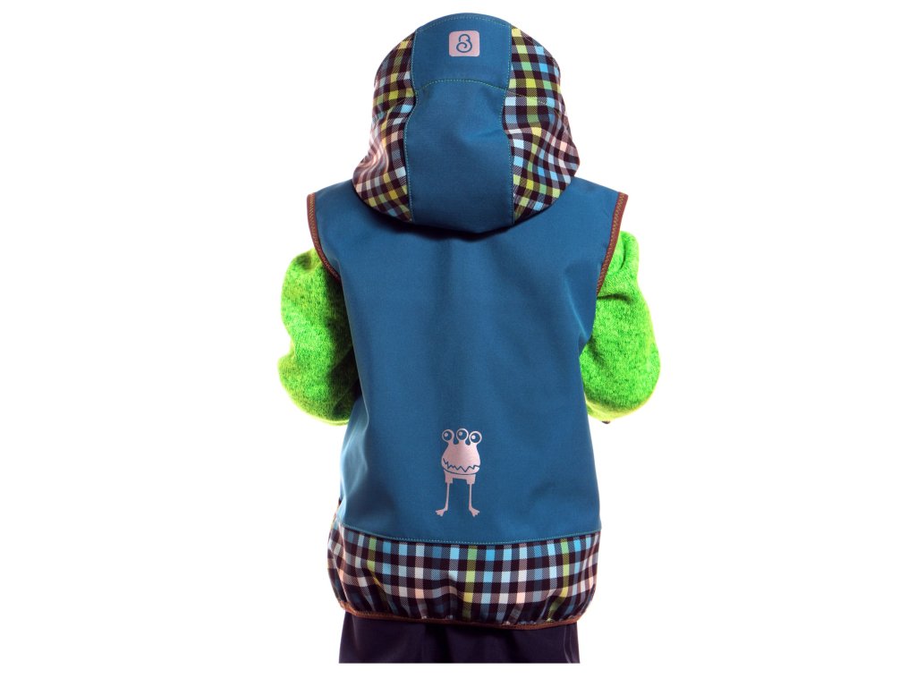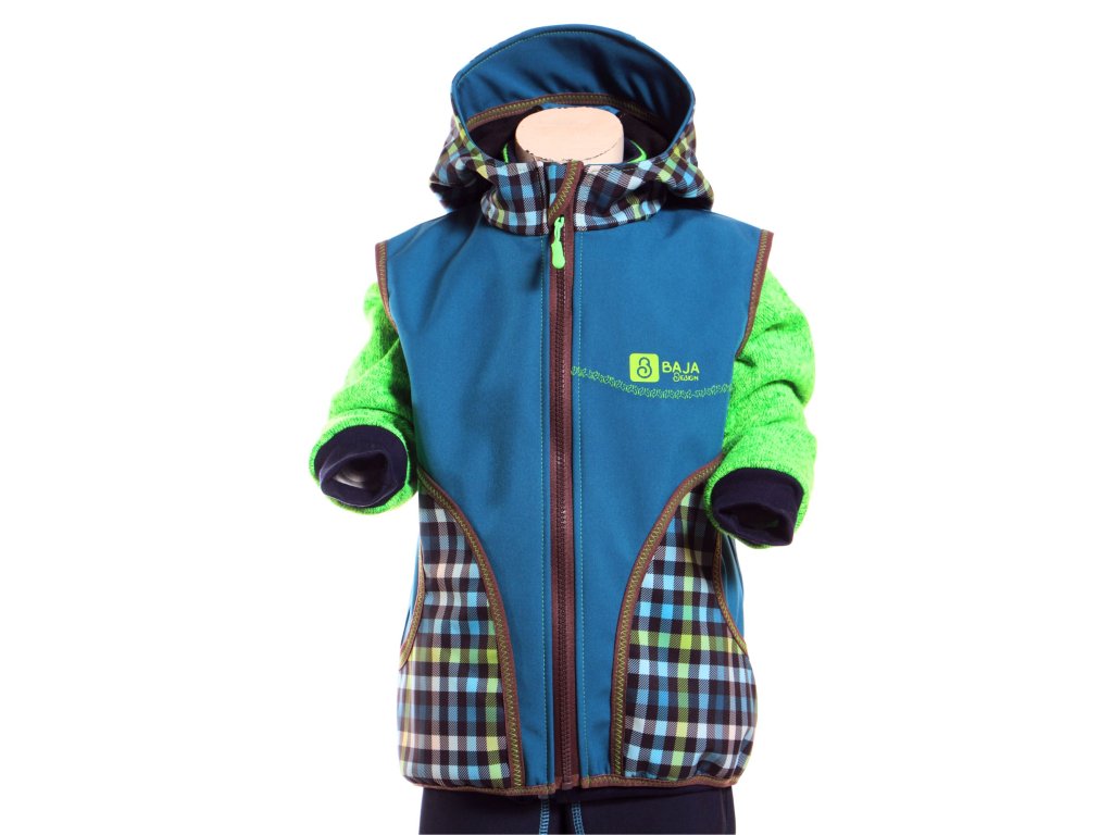 softshellová vesta pro kluky s kapucou, petrolejová + kostičky