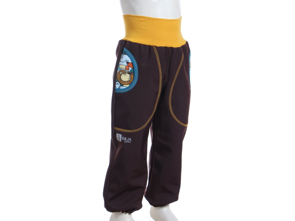 Jarní softshellové kalhoty pro kluky, hnědé + zvířátka