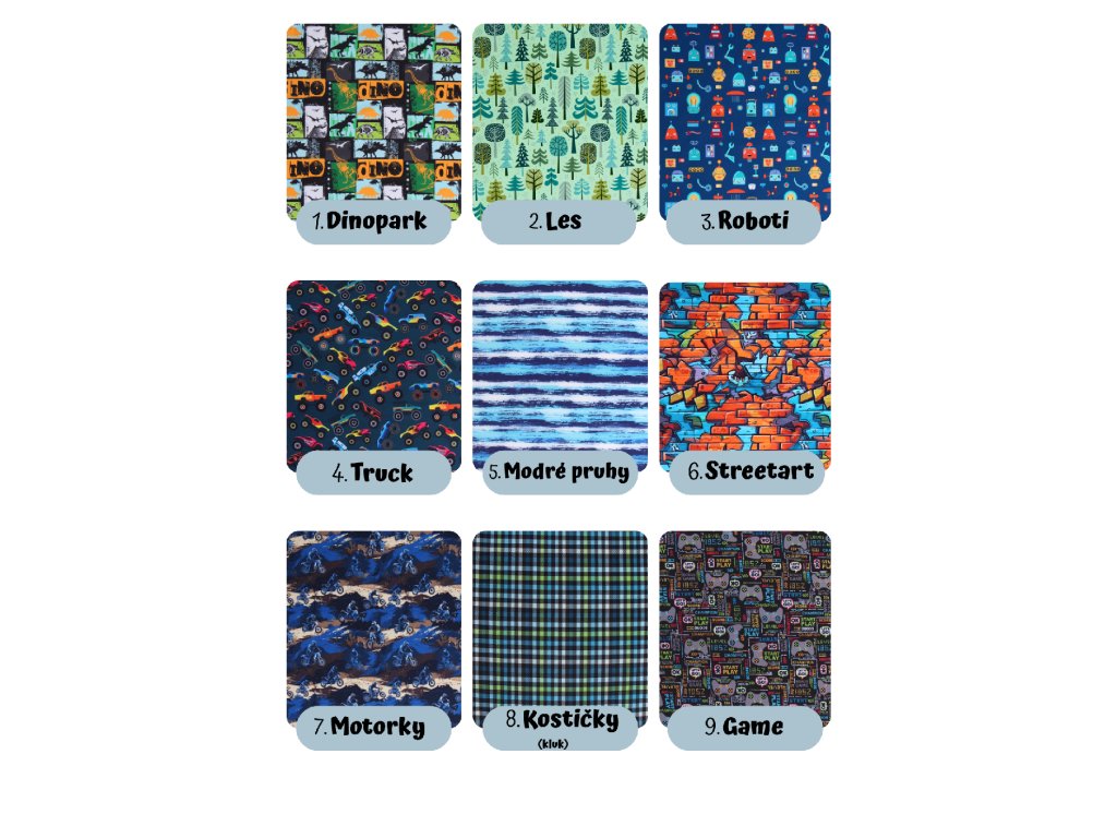 ZDE SI MŮŽETE PROHLÉDNOUT VZORY SOFTSHELLŮ, KTERÉ SI MŮŽETE VYBRAT DO CHLAPECKÝCH KALHOTY - STŘIH SLIM.