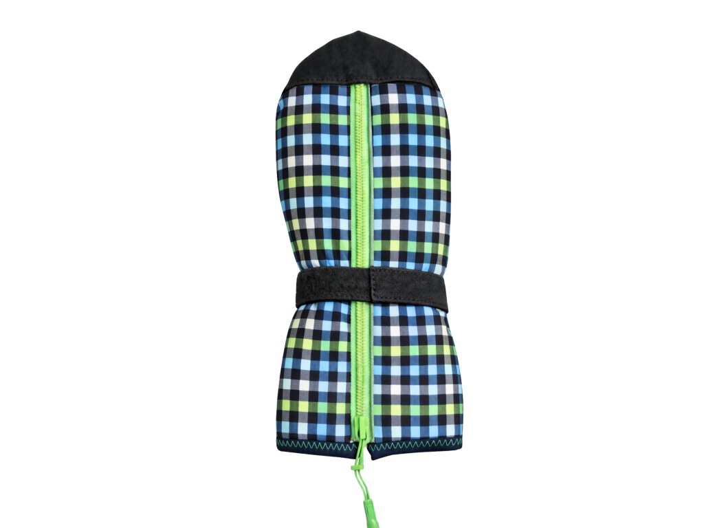 ZIMNÍ rukavice PRO SPASTIKY, černé, petrol. kostičky, zelený zip
