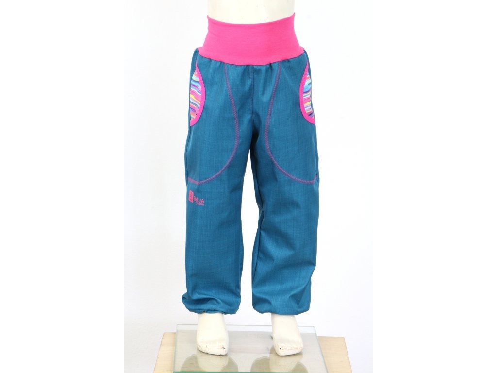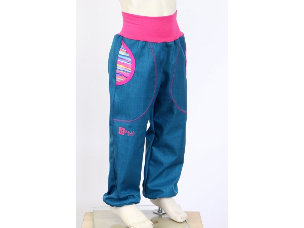 Zimní softshellové kalhoty pro holčičky, petrolejové, pestré pruhy