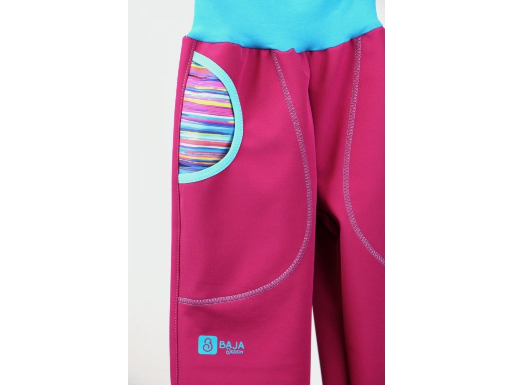 Zimní softshellové kalhoty pro holčičky, růžové, pestré pruhy