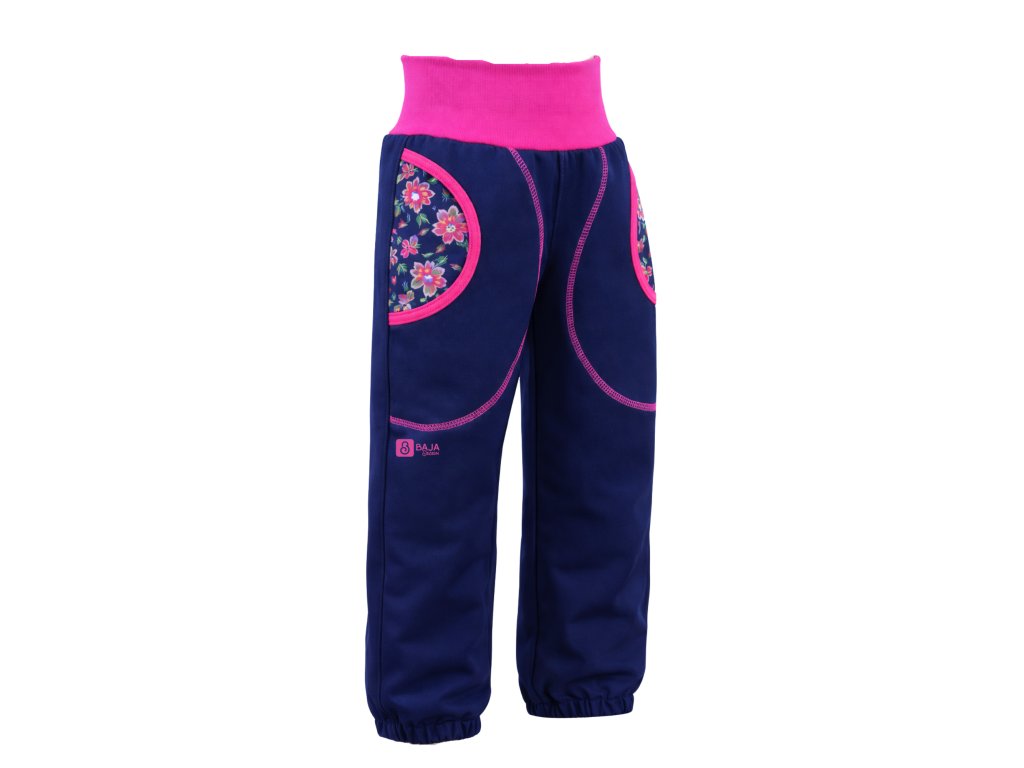 Zimní softshellové kalhoty pro holky, tm. modré, zahrada